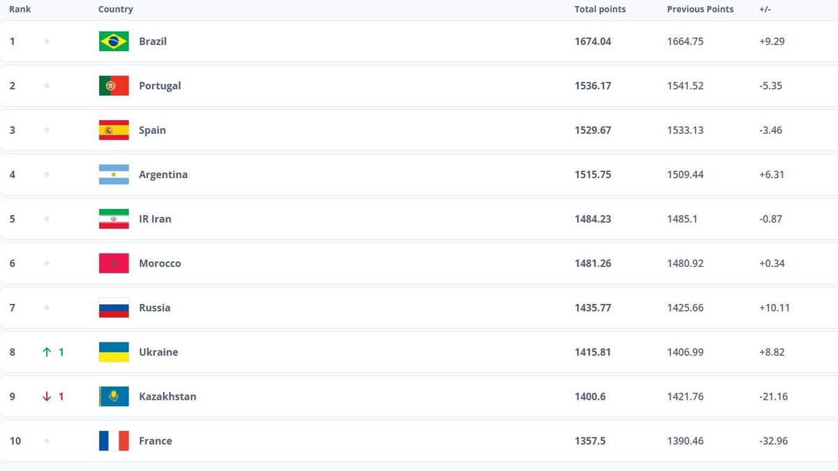 Водночас жіноча збірна України не змінила свою позицію у порівнянні з попередньою версією рейтингу – наша команда розташовується на 13-му місці.
