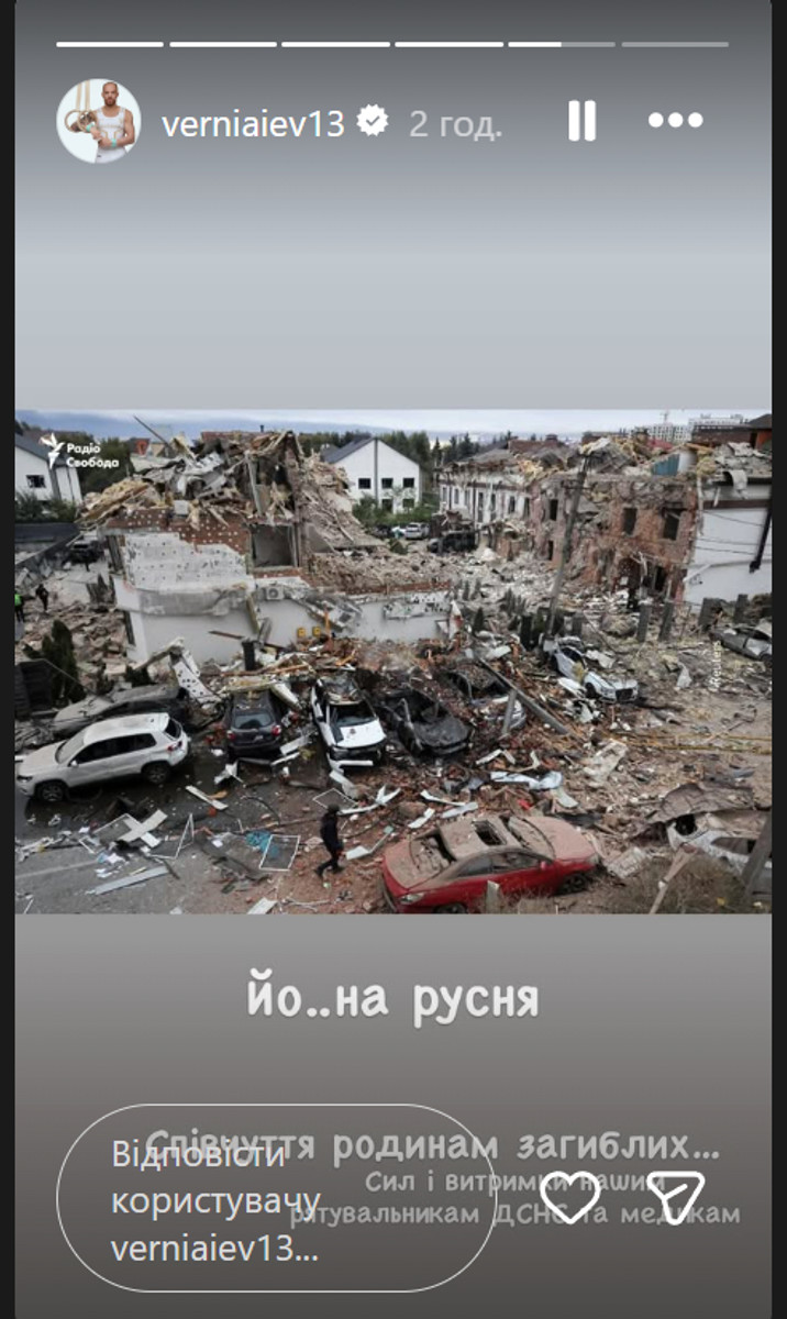Олімпійський чемпіон зі спортивної гімнастики Олег Верняєв емоційно відреагував на нічний обстріл російської армії України.
