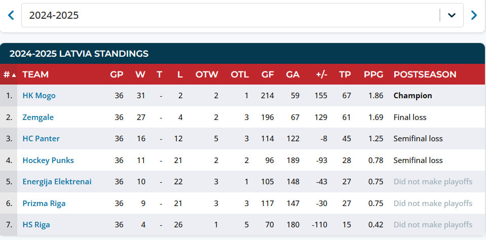 Прізма Рига та ХК Рига – точно не претенденти на високі місця. Втім, Прізма зуміла здивувати, витягнувши гру з Мого в овертайм, тому з боротьби за плейоф їх зарано викидати.