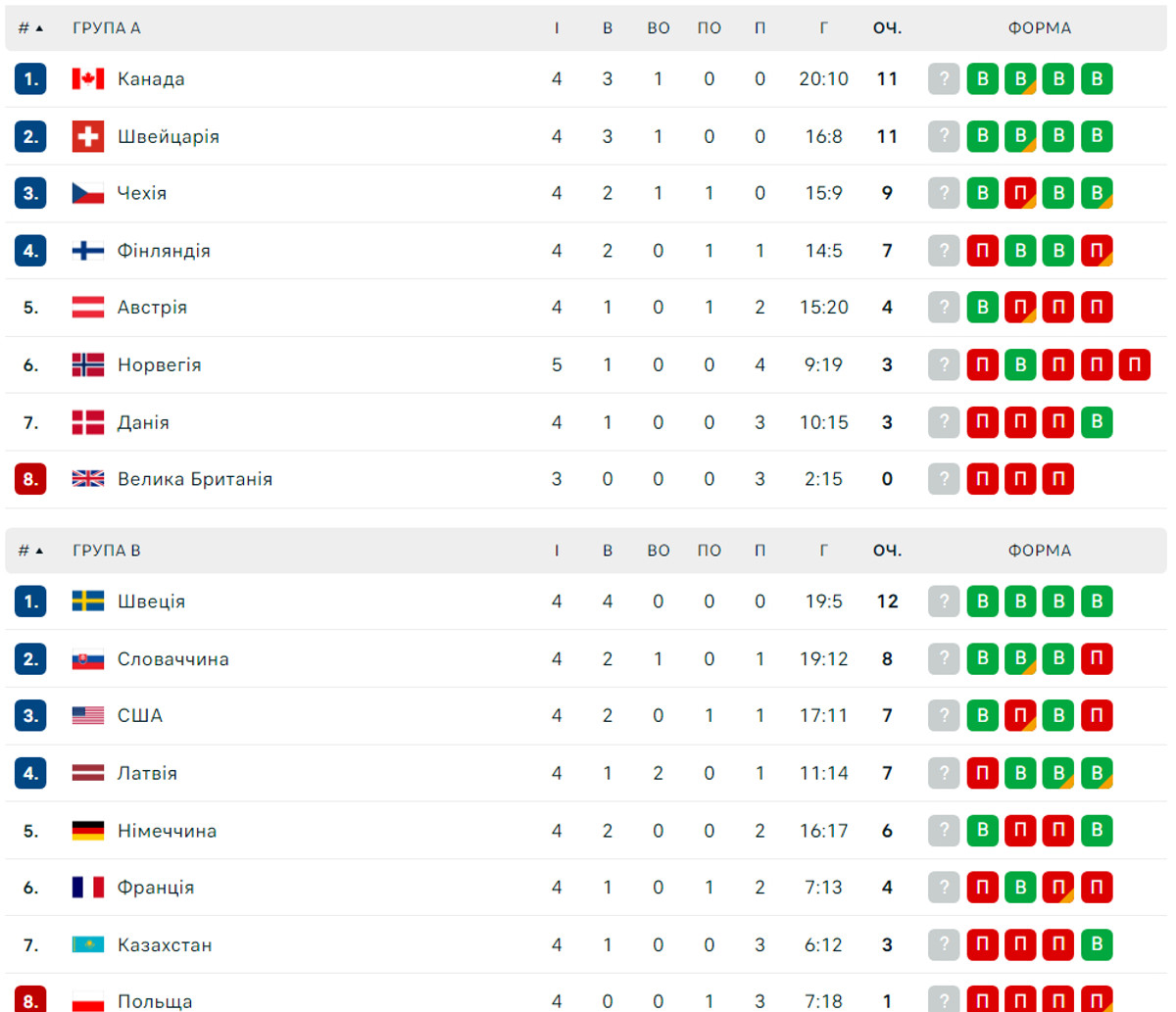 У групі В Швеція розібралась з Казахстаном, а США розгромили Францію.