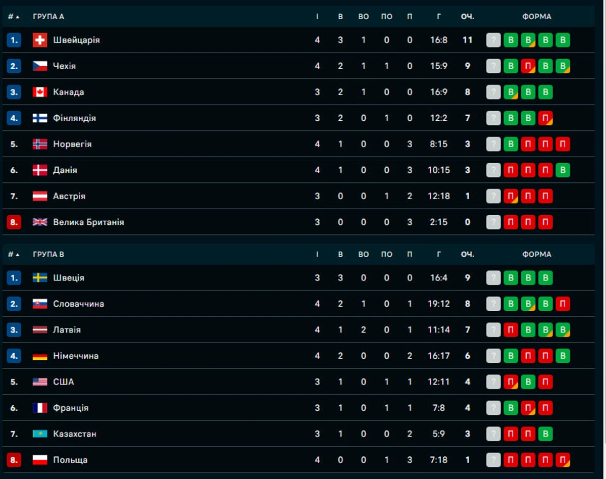 У середу, 15 травня, відбулися 4 матчі чемпіонату світу з хокею в елітному дивізіоні.