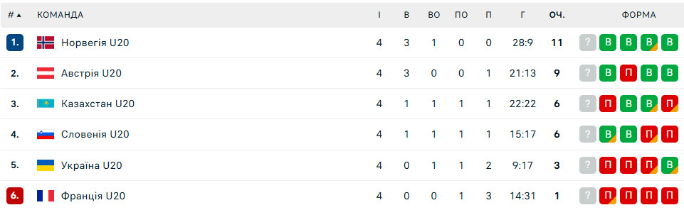 Збірна України U-20 – на передостанньому місці в турнірній таблиці ЧС-2026 та ризикує вилетіти