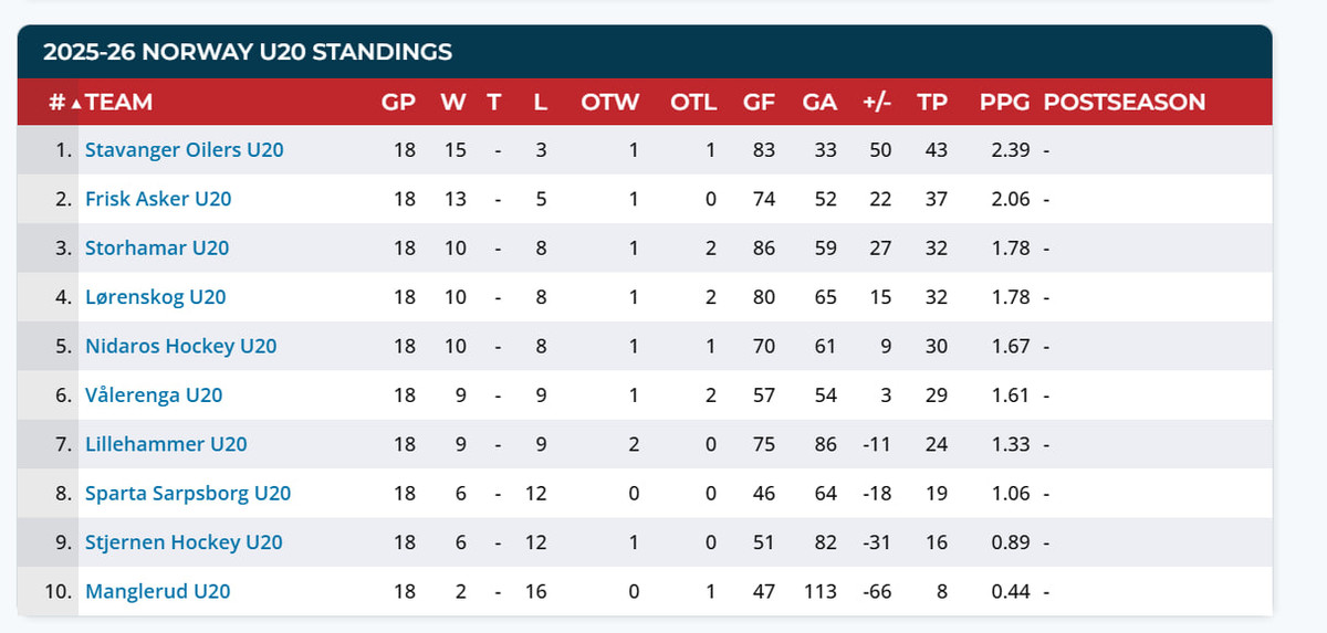 Загалом за Ставангер U-20 виступають десятеро українців, але не всі підходять під вікову категорію, та й тренерський штаб має право на свій вибір. Наприклад, 18-річний Михайло Набойченко пропускає лише 1,33 шайби та має 94% відбитих кидків – але з голкіперами у нас і так усе чудово.