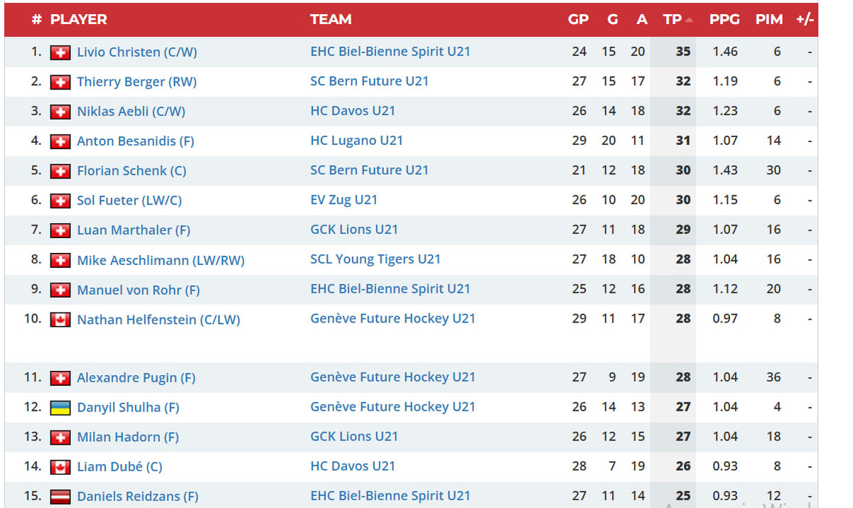 Поруч з Євтєховим майже рік тому виблискував і Данило Шульга (2 + 4). І цього сезону він підтверджує свій клас, перебуваючи серед найкращих бомбардирів чемпіонату Швейцарії U-21.