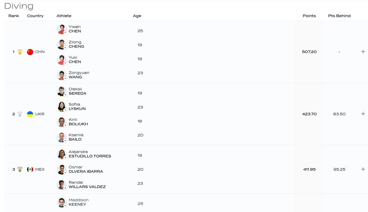 Збірна України у складі Олексія Середи, Кирила Болюха, Ксенії Байло та Софії Лискун здобула срібло у змішаних командних змаганнях в Суперфіналі Кубку світу зі стрибків у воду.