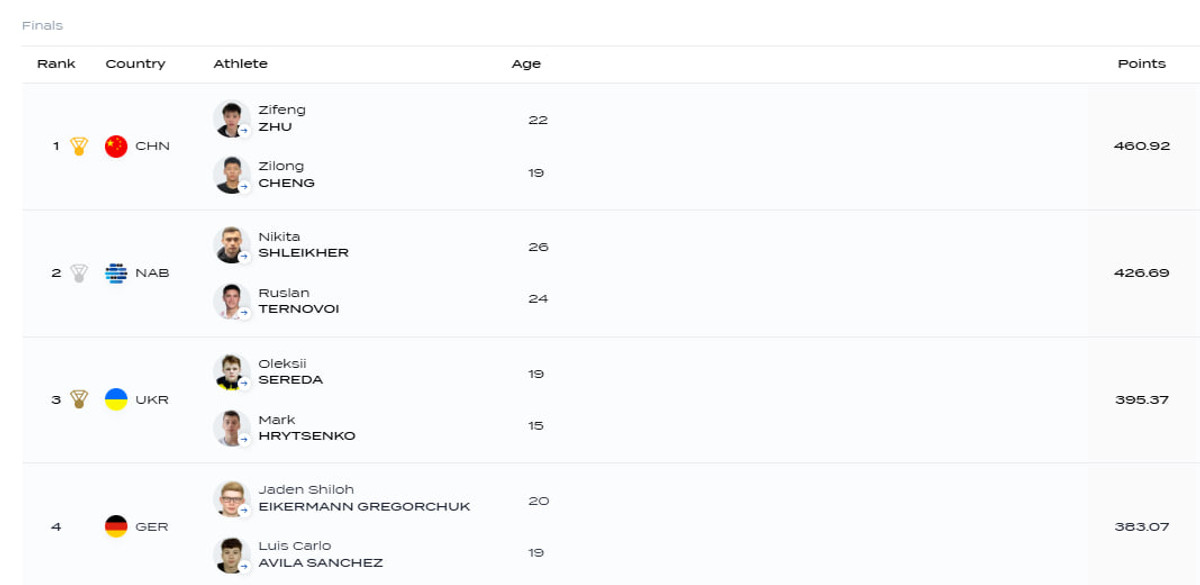 Загалом Олексій та Марк набрали 395.37 балів. Такий показник дозволив на 12,30 очок випередити представників Німеччини.