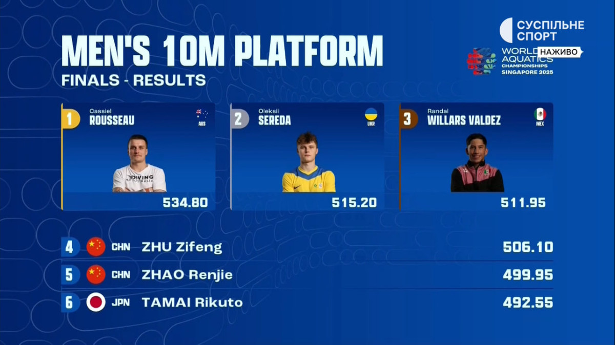 За підсумками усіх спроб змагання виграв все ж австралієць Руссо, а Олексій Середа із загальним результатом 515.20 очок здобув срібло. Зазначимо, що це єдина медаль для України на ЧС-2025.