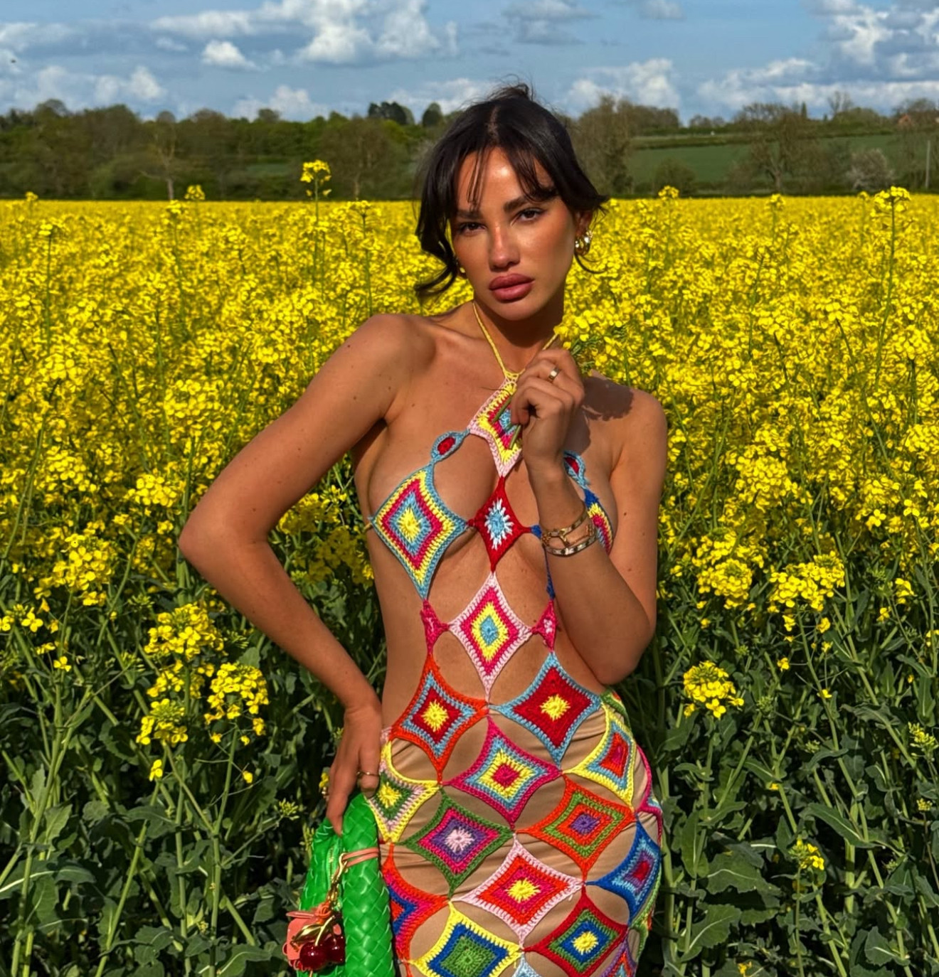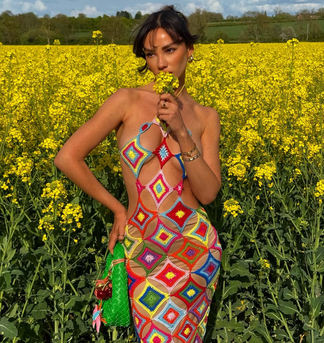 Цього разу 27-річна модель засяяла у яскравому весняному образу, який вона продемонструвала на тлі яскравого поля квітів.