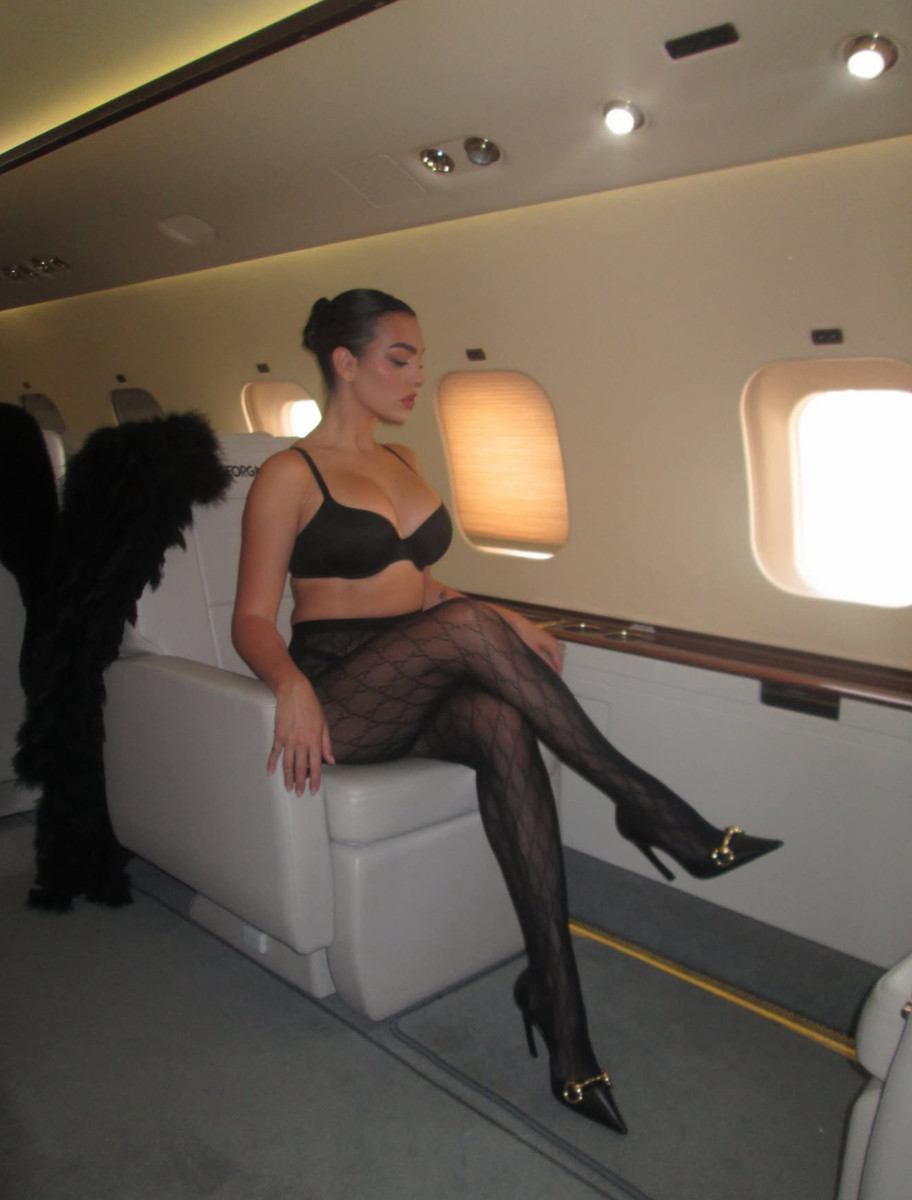 На фото аргентино-іспанська модель позувала у доволі відвертому вбранні і без блузки всередині літака. Джорджина порадувала прихильників гарячим фото у спідній білизні, яке стало одним із найобговорюваніших моментів з робочої поїздки нареченої Кріштіану.