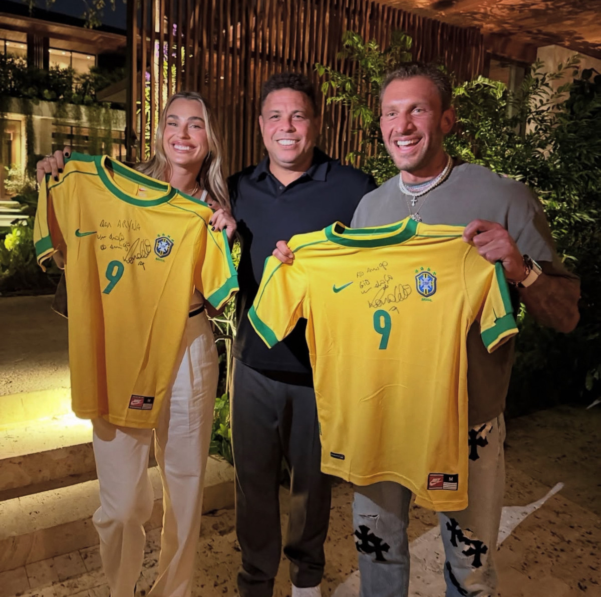 Перша ракетка світу разом зі своїм нареченим Георгіосом Франгулісом отримала у подарунок ексклюзивні футболки збірної Бразилії з автографами легендарного Роналдо – дворазового володаря Золотого м'яча.