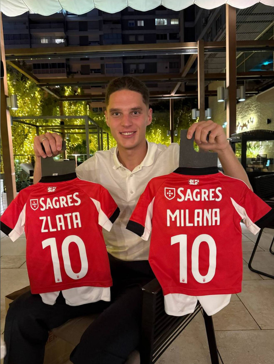 Футболіст поділився у соцмережах фото, на якому тримає дві маленькі форми лісабонського клубу з іменами своїх доньок – Злата та Мілана.