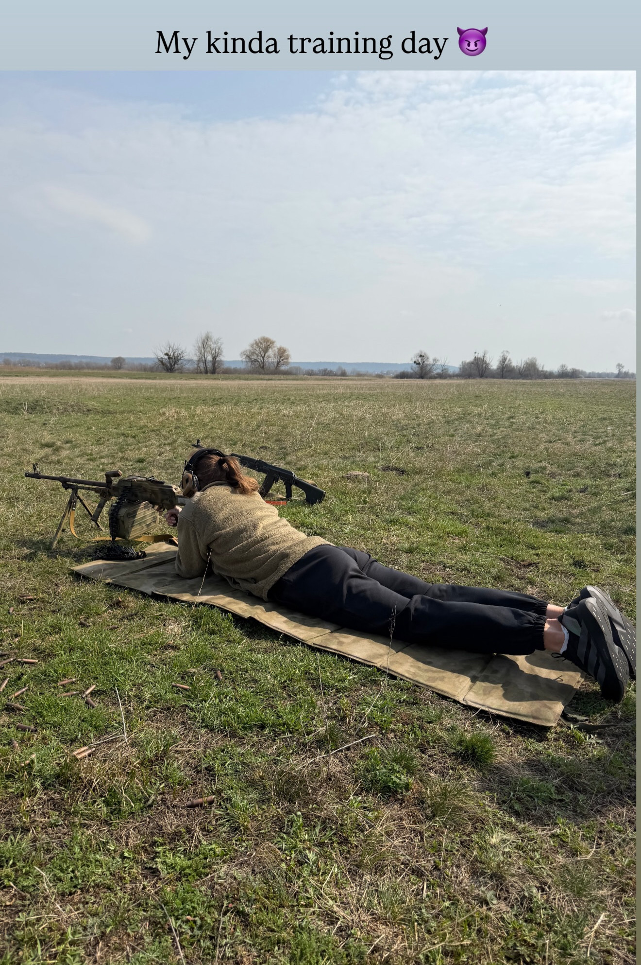 На знімках Світоліна позує у камуфляжі посеред поля та демонструє навички стрільби з різних видів зброї.