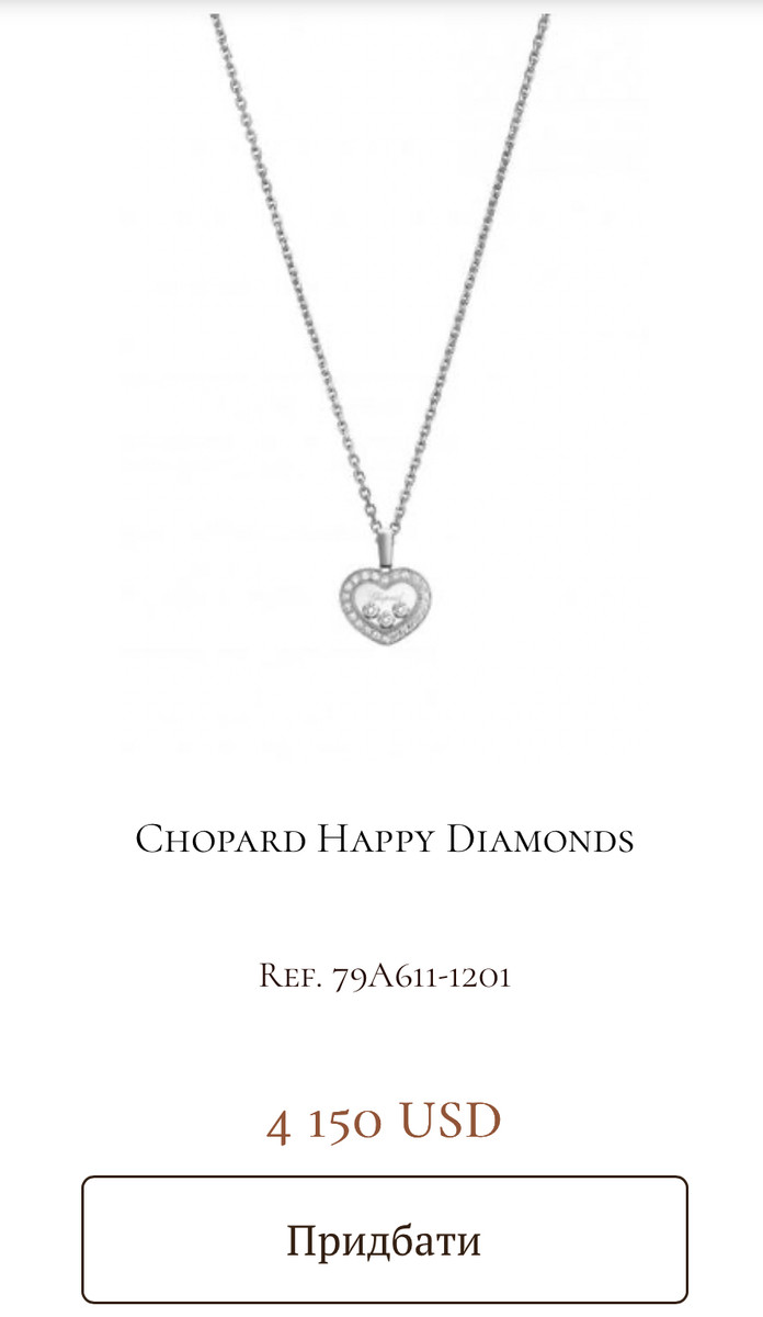 Але на цьому сюрпризи не завершилися. Ганна також поділилася фото з вишуканою підвіскою від швейцарського бренду Chopard. Така прикраса обійдеться понад 4 тисячі доларів.