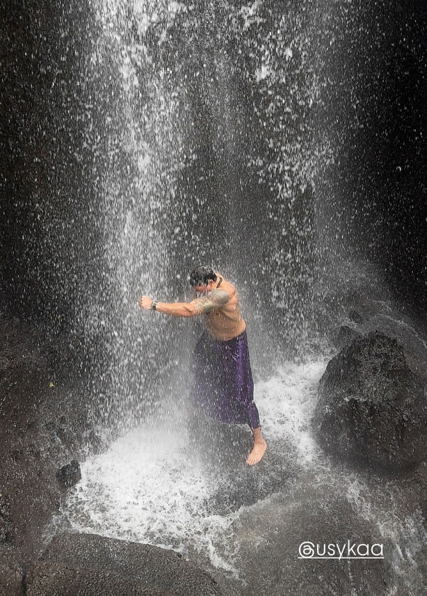 Олександр Усик вразив фанатів мальовничим водоспадом Таман Беджі Грія на острові Балі. Чемпіон світу поділився атмосферним фото, на якому він боксує просто під потоками води, демонструючи силу, спокій і гармонію.