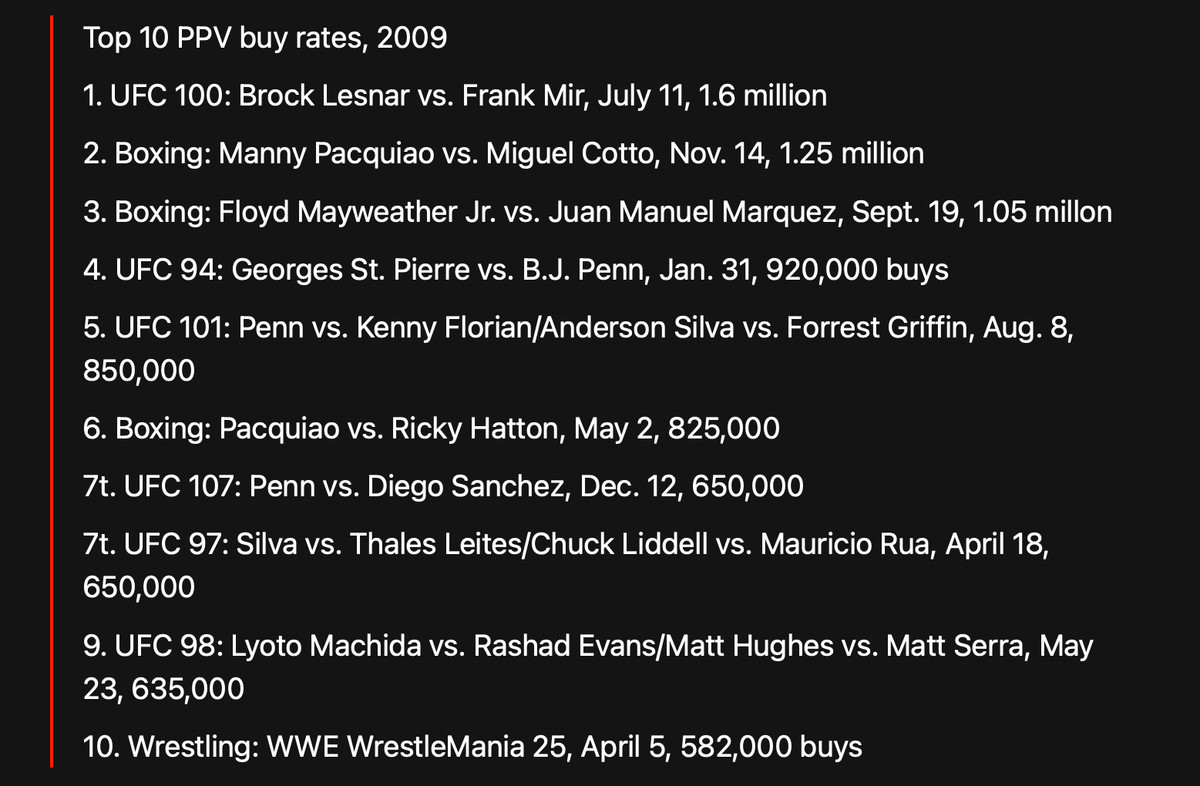 У другій половині 2000-х UFC остаточно знаходить свою формулу успіху. Рay-Per-View стає головним джерелом доходу. Великі бої перетворюються на події, які дивиться весь світ. Організація починає виходити за межі США, підписує міжнародні контракти і формує глобальну аудиторію.