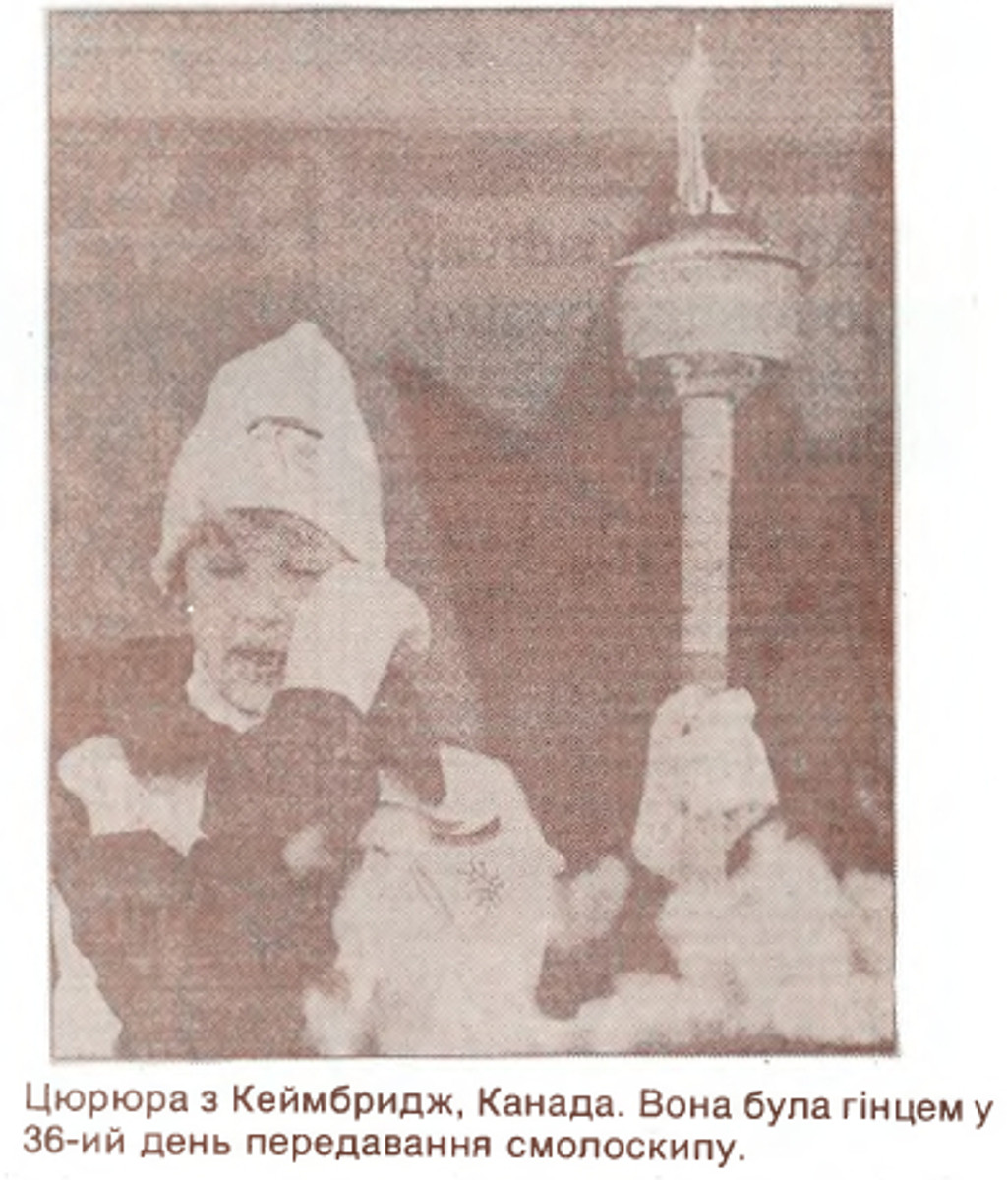 Участь в естафеті брала і 16-річна Діяна Цюрюра (або Цюцюра) з Кембриджа, Канада. Вона була гінцем у 36-й день передавання смолоскипа.