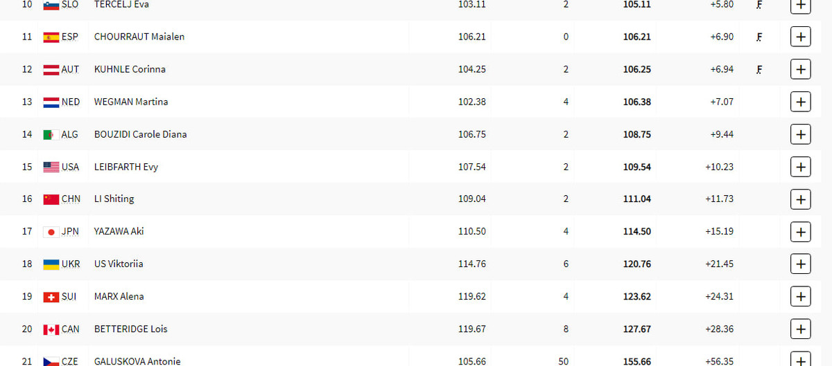 31-річна киянка посіла 18 місце у півфіналі з результатом 120,76. До наступної стадії вийшли лише 12 найкращих спортсменок.