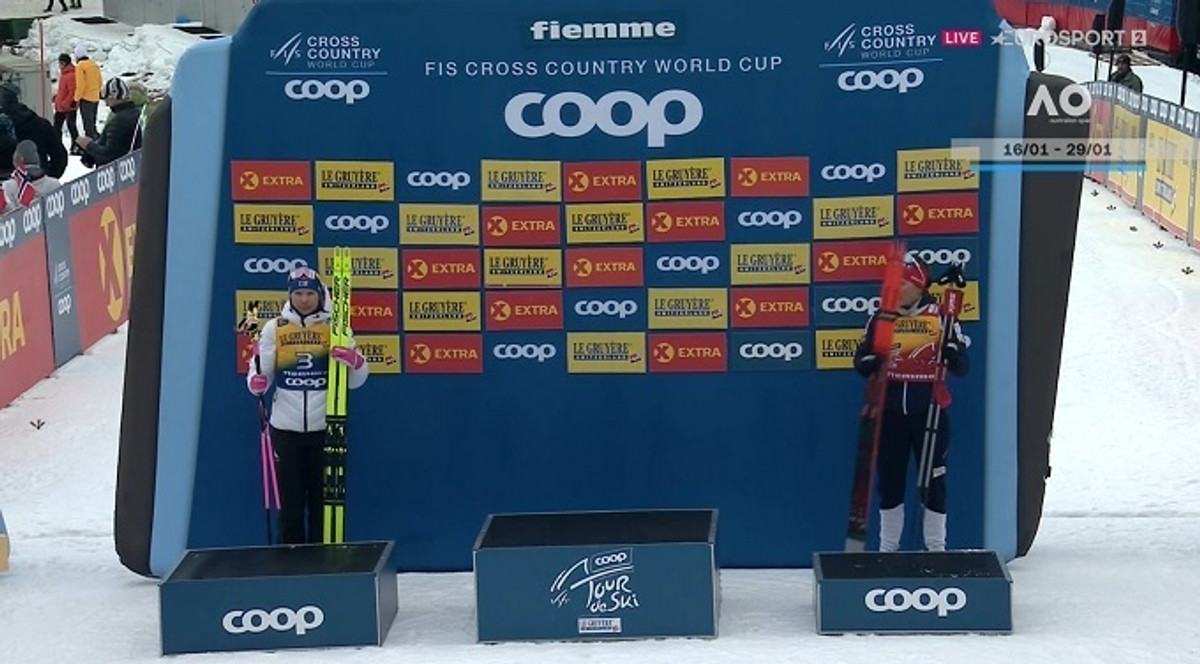 У жіночому все починалося максимально банально та прогнозовано. Тереза Йохауг рано розвалила пелотон і помчалася за своєю черговою перемогою в домінуючому стилі. Проте свої сили легендарна норвежка трохи переоцінила. І тому, що пішла в атаку настільки рано, і тому, що під час гонки відмовилася від ідеї перевзутися в більш свіжу пару лиж, що зробили всі її головні суперниці.