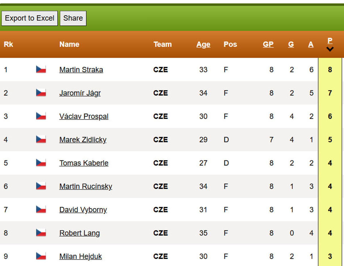Перша "НХЛівська Олімпіада" Нагано-1998 завершилася для чехів тріумфом. Після цього була "бронза" Турина, де з дев'яти найрезультативніших гравців семеро були старшими за 30 років. Основним голкіпером тоді був Томаш Вокоун, якому в тому ж році також виповнилося 30.