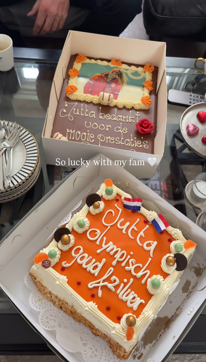 Особливим моментом став святковий торт. Рідні підготували для Ютти десерт із її фотографією та написом: "Ютта виграла на Олімпіаді золото та срібло".