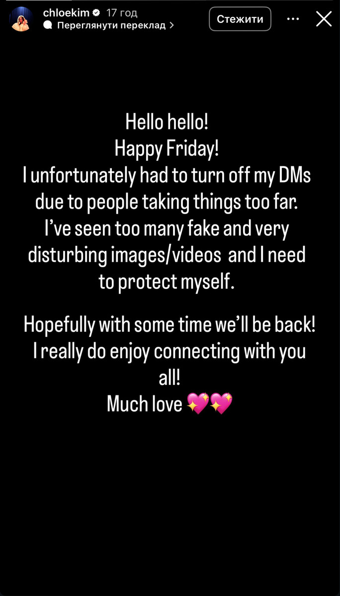 "Мені довелося вимкнути особисті повідомлення, бо люди зайшли надто далеко. Я бачила занадто багато фейкових і дуже тривожних зображень та відео.