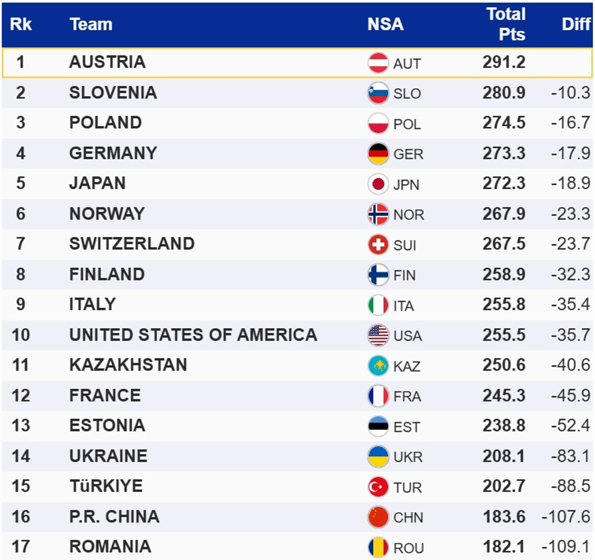 Лідирує на даний момент австрійський дует Ян Хьорль/Штефан Ембахер. Вони випереджають команди Словенії (Анже Ланішек/Домен Превц) та Польщі (Павел Вонсек/Кацпер Томасяк).