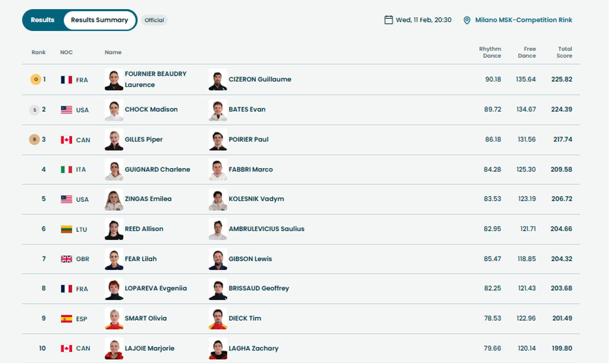 У середу, 11 лютого, на Олімпійських іграх-2026 був розіграний комплект медалей у фігурному катанні – у танцях на льоду.