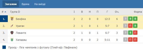 У 2 турі елітного раунду Ліги чемпіонів з футзалу Ураган поступився Бенфіці.