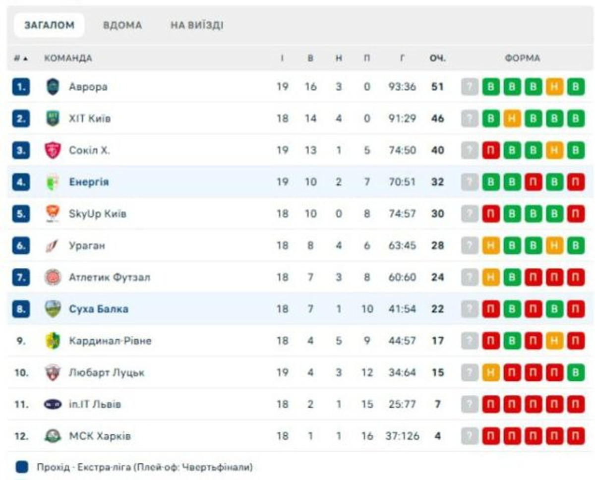 Завершився відкладений матч 17 туру чемпіонату України з футзалу, в якому зустрічались Енергія та Суха Балка.