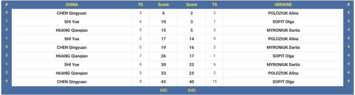 На цьому етапі нашу команду представляли Ольга Сопіт, Аліна Полознюк та Дарія Миронюк, які завершили свої виступи вже на стадії 1/8 фіналу, програвши з рахунком 40:42.