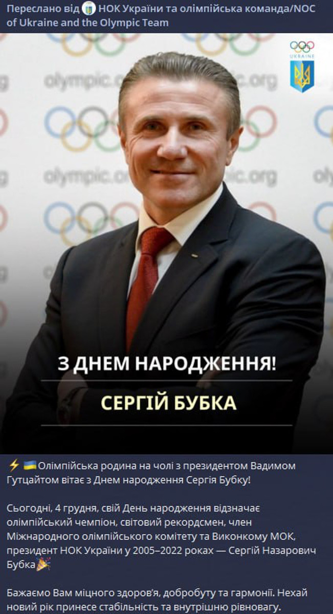 НОК привітав Бубку з днем народження у соцмережах, але потім видалив пост