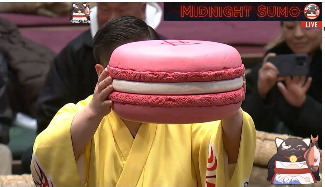 Явгусишин отримав гігантський макаронс, як приз Кубку дружби Японії та Франції.