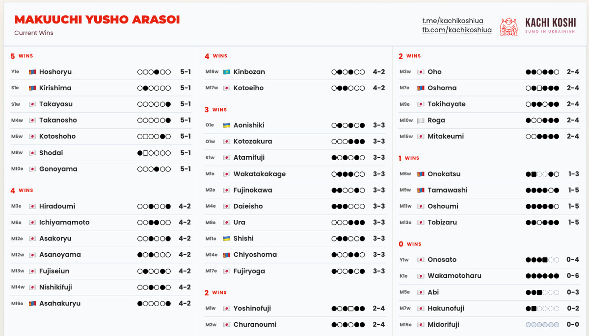 21-річний сумоїст ще зберігає шанси на юшо на турнірі, але, зазвичай, навіть 12 перемог не вистачає для "чистої перемоги". Останні два турніри Данило здобував по 12 перемог, але тріумф виборював у додаткових матчах плейоф.