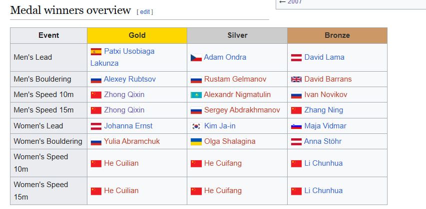 Його слова легко підтверджуються. До 2007 року представники Китаю не вигравали медалей взагалі. У 2009 році стався прорив у швидкісному скелелазінні, коли всі місця на подіумі дісталися представникам Піднебесної.