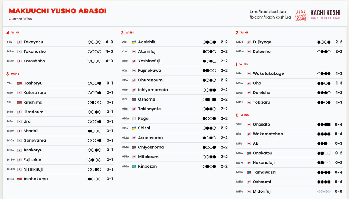 Турнірна таблиця Haru Basho. День 4:
