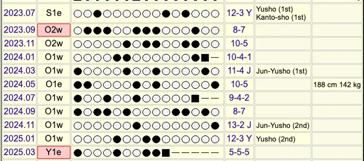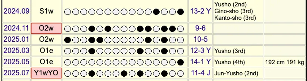 Якщо вони й надалі поєднуватимуть перемоги над йокозунами з посередніми турнірними результатами, то матимуть шанс наблизитися до показника Акіношими, який у 1980–1990-х роках зібрав 16 кінбоші.