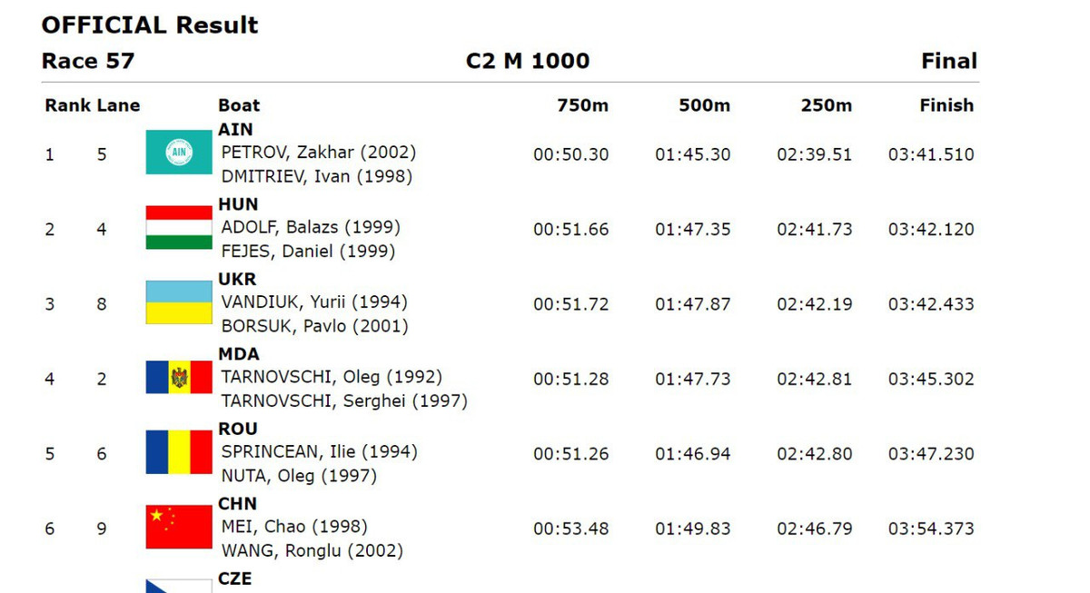 Наші каноїсти вибороли бронзу на дистанції 1000 метрів у двійці. Їхній результат 03:42,433 хвилини.