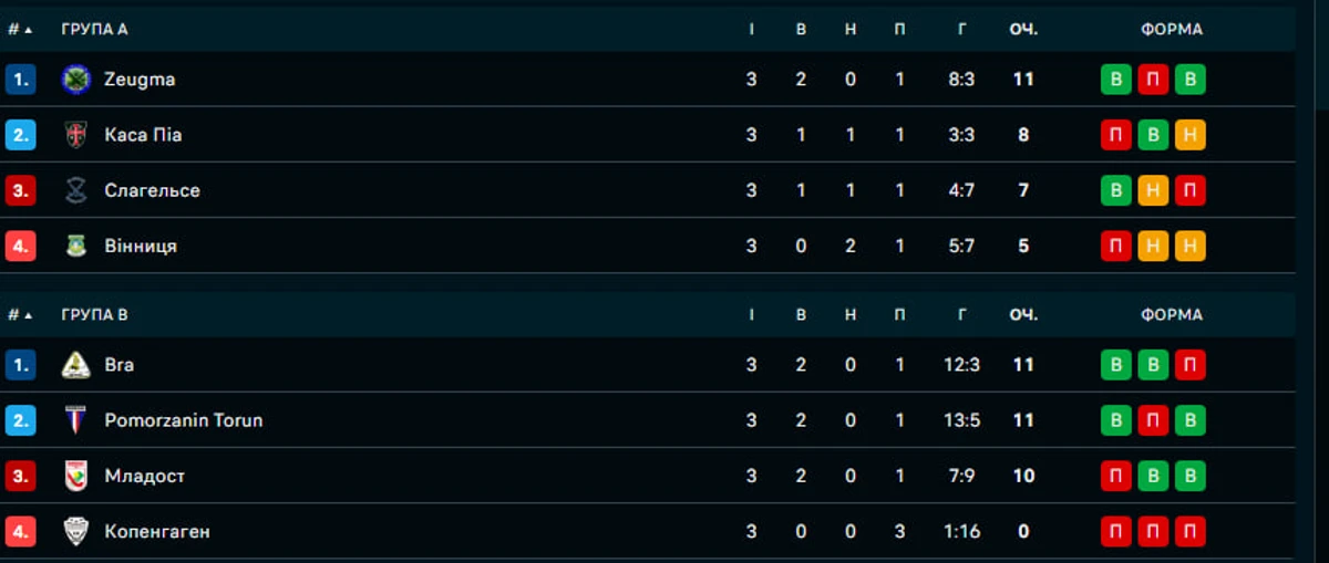 Турнірна таблиця