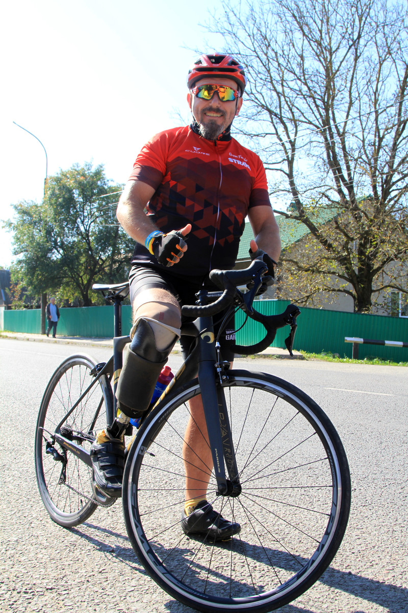 "Тримаюсь за молодими як можу, потім вони вмикаються, я відстаю. Деколи вони мене чекають, але коли в них своя робота по трасі, то я вже не їду з ними до кінця маршруту. Проводжаю їх поглядом, а сам повертаю назад, мені і сотки кілометрів зараз достатньо", – розповідає атлет. В мирні часи він завжди їздив на велосипеді на роботу – за день пару десятків кілометрів.