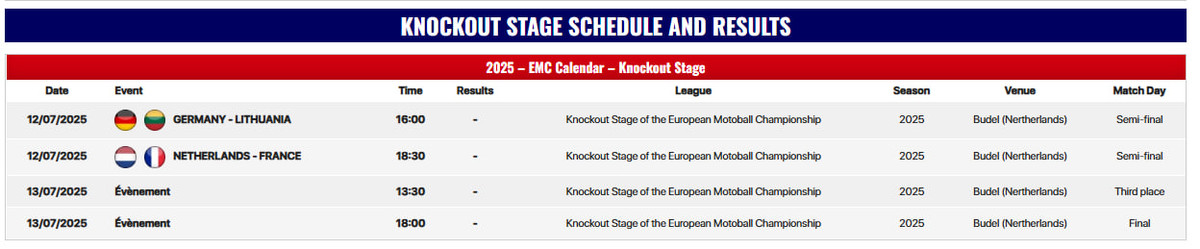 Євро-2025 з мотоболу. Розклад 1/2 фіналу