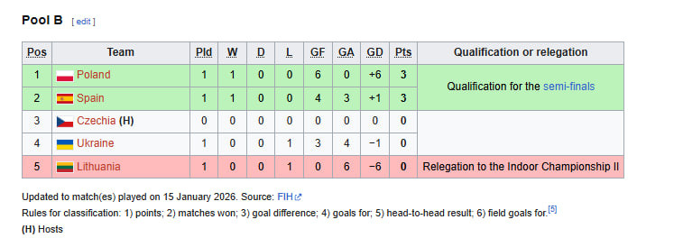 Турнірна таблиця групи B після першого ігрового дня