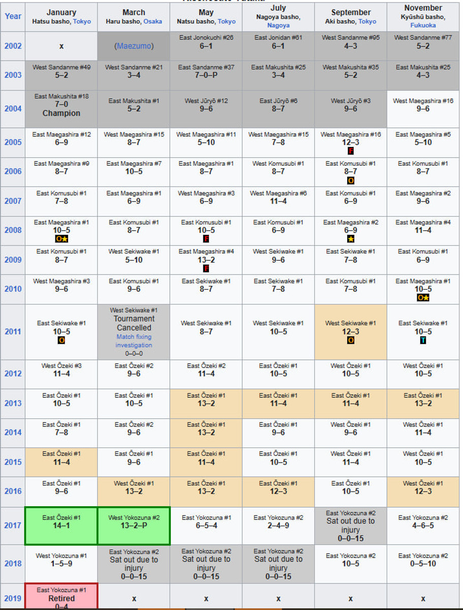 Він тріумфально розпочав, вигравши Haru Basho, але після цього весь час боровся з травмами.