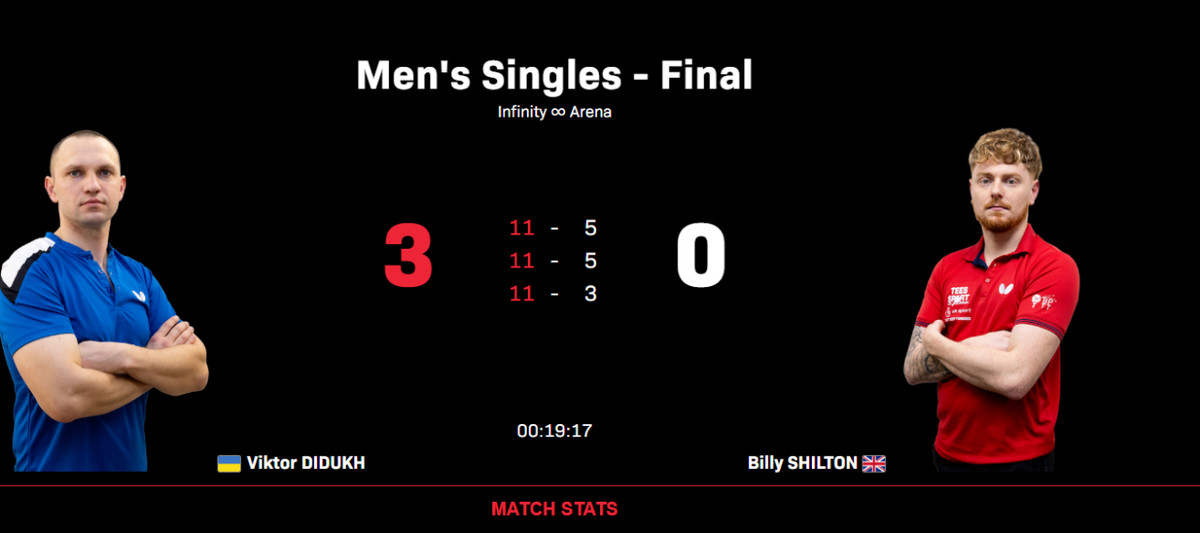 У фіналі він у трьох сетах переграв британця Біллі Шилтона (11:5, 11:5, 11:3).