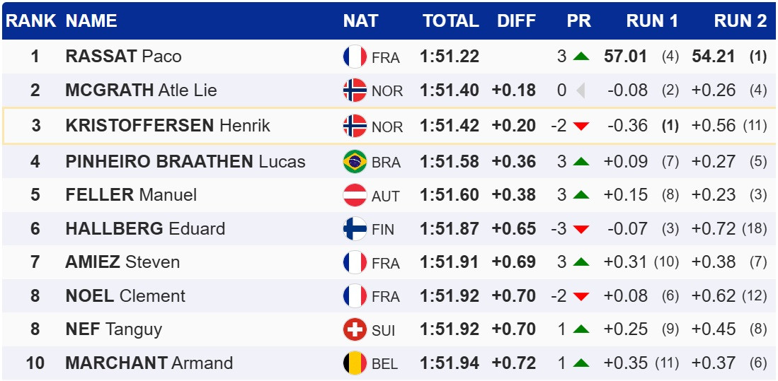 Сьогодні в Адельбодені Расса зумів прорватися з четвертого місця після першої спроби та у підсумку випередив двох норвежців – Атле Лі Макграта та Хенріка Крістофферсена. Цей успіх дозволив французу перехопити лідерство у слаломному заліку Кубку світу.