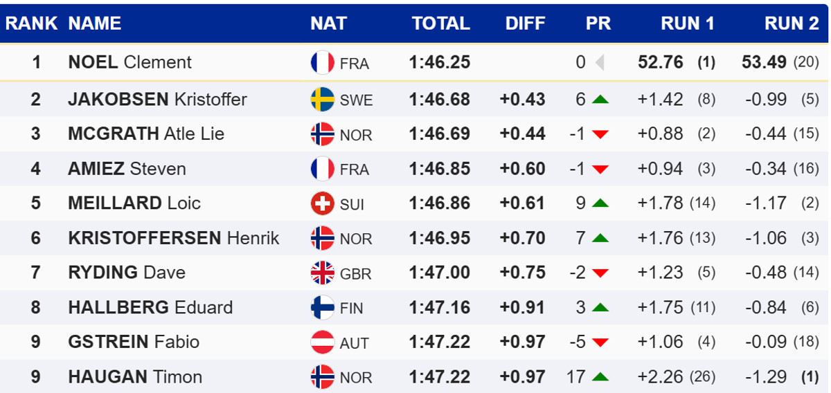 Він на 0,43 секунди випередив шведа Крістоффера Якобсена, який піднявся на подіум лише вчетверте в своїй кар’єри. Топ-3 замкнув представник Норвегії Атле Лі Макграт.