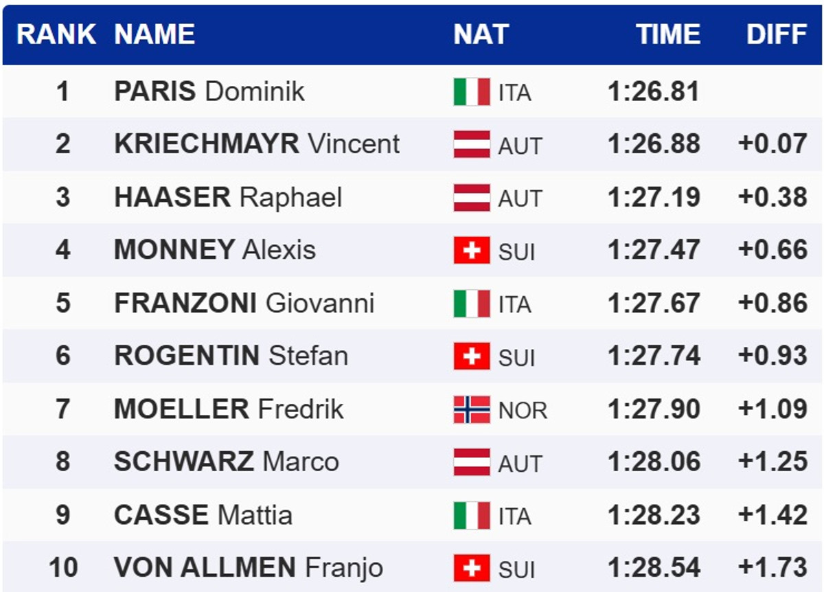 Для Паріса це друга перемога поспіль у Квітф'єллі. Напередодні, 21 березня, на цій же трасі він виграв швидкісний спуск.