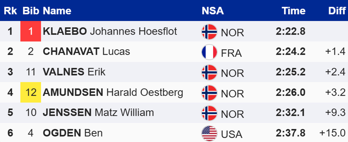 Норвезький лижник Йоханнес Клебо виграв спринт вільним стилем на етапі Кубку світу в швейцарському Давосі. У фіналі він випередив француза Лука Шанава та свого партнера по команді, Еріка Вальнеша. Лідер загального заліку Кубку світу, Харальд Остберг Амундсен, фінішував четвертим.