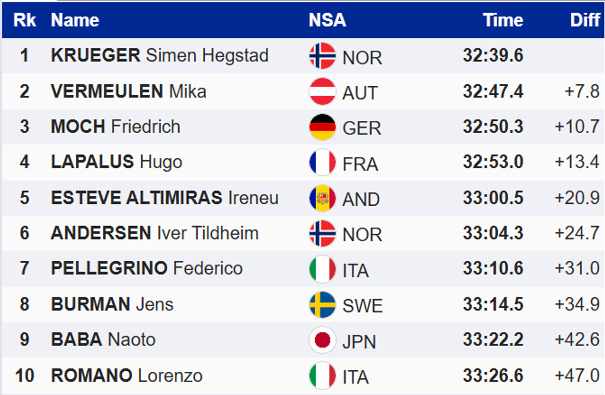 Норвезький лижник Йоханнес Клебо став переможцем супербагатоденки Тур де Скі-2024/25. Це його четвертий тріумф у загальному заліку Туру: раніше він вигравав гонку в 2019, 2022 і 2023 роках. Таким чином, Клебо став співвласником рекорду: чотири рази Тур вигравав також легендарний швейцарець Даріо Колонья.