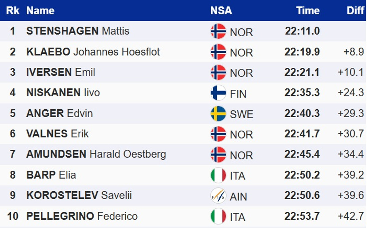 Норвезький лижник Маттіс Стенсхаген виграв другий етап багатоденки Тур де Скі-2025/26 – розділку на 10 км класикою в італійському Тоблаху. Він на 8,9 секунди випередив свого партнера по команді та лідера загального заліку, Йоханнеса Клебо. Топ-3 замкнув ще один представник Норвегії, Еміль Іверсен. Для Стенсхагена це перша в кар'єрі перемога на Кубку світу.