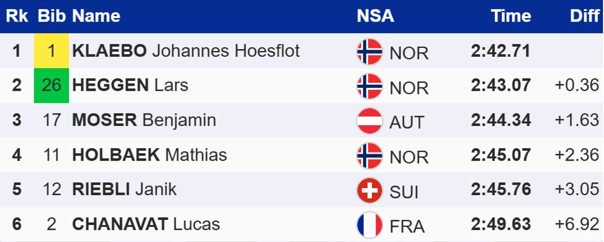 Норвезький лижник Йоханнес Клебо виграв спринт вільним стилем на етапі Кубку світу в шведському Фалуні. У фіналі 11-разовий олімпійський чемпіон випередив свого партнера по команді Ларса Хеггена, а також австрійця Беньяміна Мозера, для якого це лише другий у кар'єрі подіум на Кубку світу.
